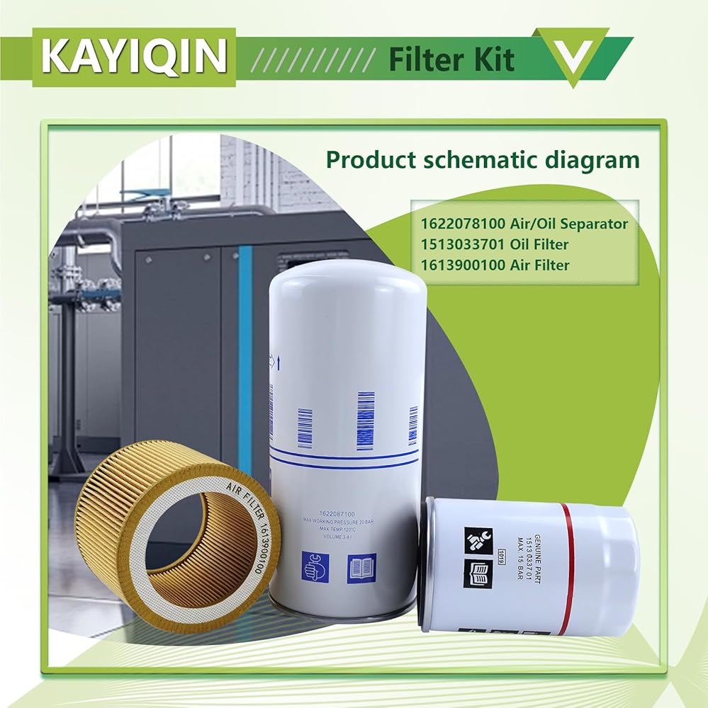 2901091900 Filter Kit Compatible with 1622087100 Air/Oil Separator + 1513033701 Oil Filter + 1613900100 Air Filter Air Compressor Replacement Parts 2901-0919-00