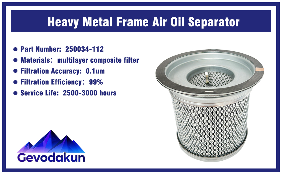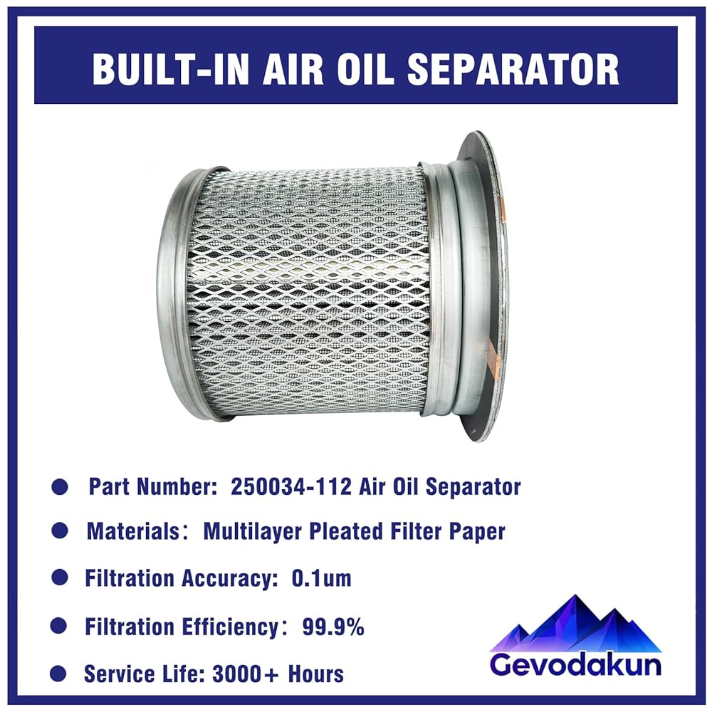 HIGH-EFFICIENCY FILTRATION - Our 250034-112 air oil separator made of multi-layer composite filtration paper, features a large filtration area with 0.1um precision, filtration efficiency up to 99.9%, effectively separate the oil mixed in the compressed air to protect your compressor and improve oil recycling efficiency
