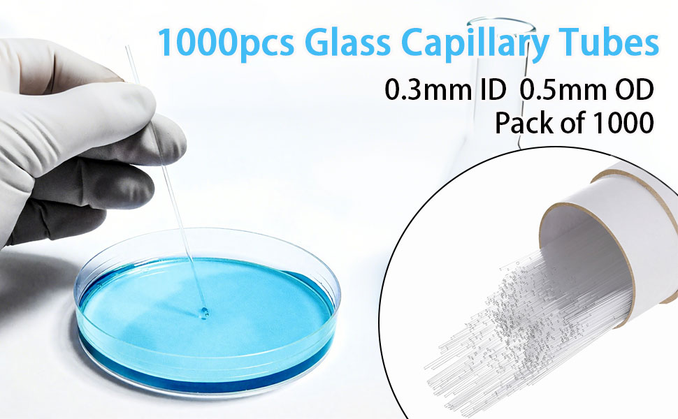 1000pcs Glass Capillary Tubes,100 mm Micro Glass Capillary Tubes,Tube Both Ends Open Glass Pipettes for TLC Spotting Lab Supplies,0.3mm ID,0.5mm OD,Pack of 1000