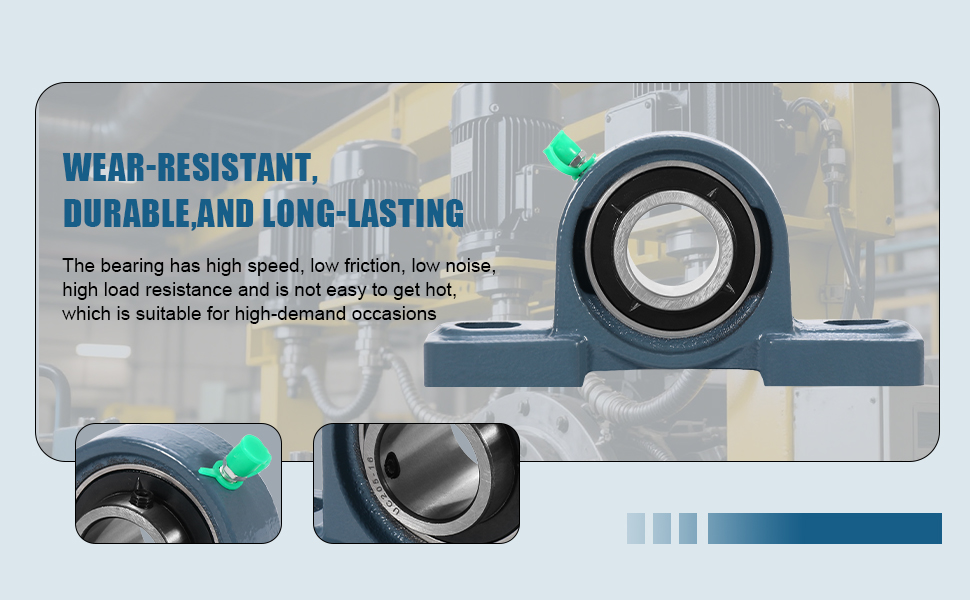 Solid Cast Iron Housing:Each bearing features a solid cast iron housing, which provides a sturdy base to bearing, allowing it to stay in position