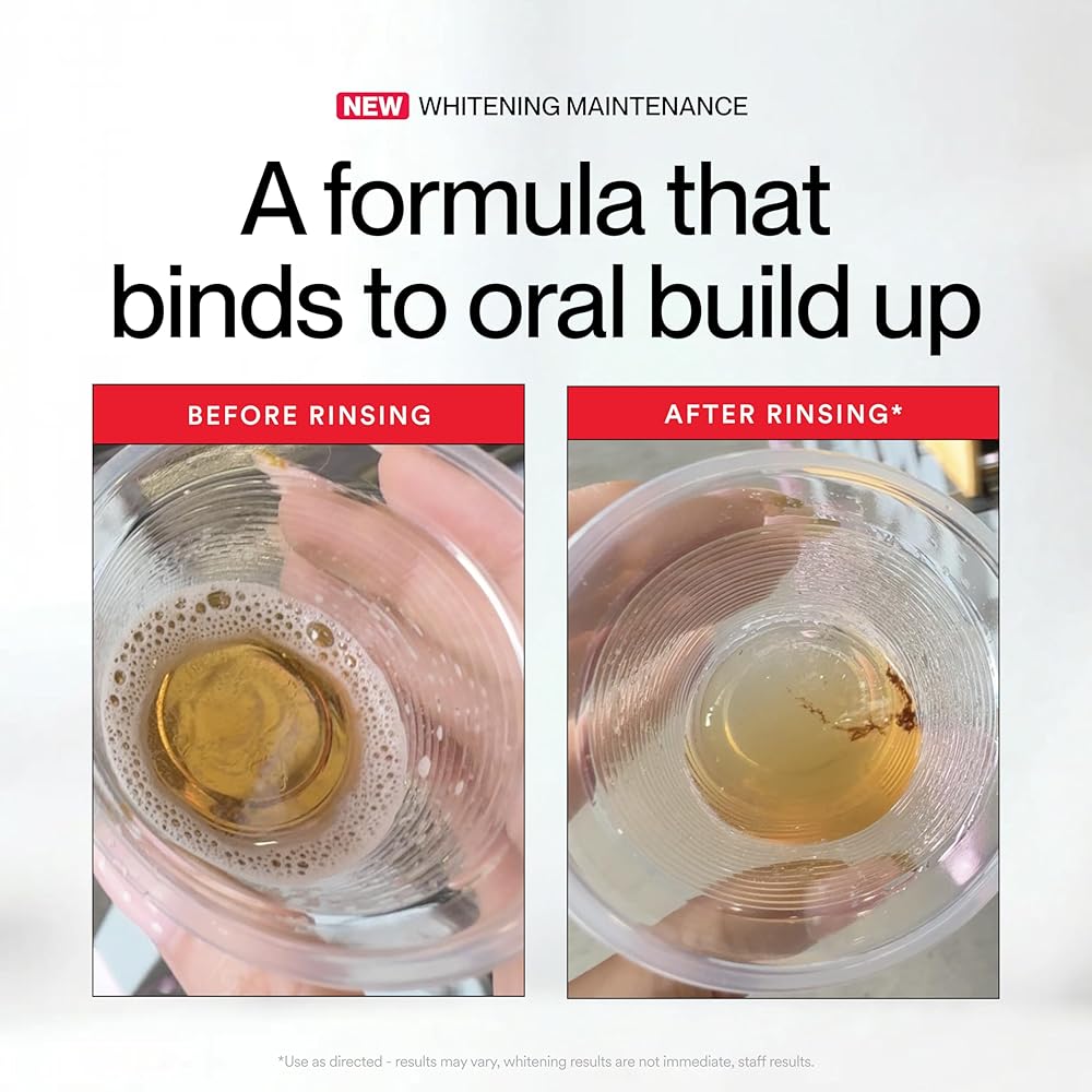 Whiten. Freshen. Rinse away the gunk. The iD Stain Whitening Mouthwash is not your average mouthwash, it is an advanced whitening rinse that works with your routine to help maintain white teeth, freshen breath, and lift visible build-up from the areas regular brushing can miss. As you rinse, formula, including peroxide, binds to proteins and debris in your mouth, pulling them into visible particles you can actually see in the sink. That's the build-up your toothbrush didn't catch. The cleaner your mouth is, the more effective whitening agents like hydrogen peroxide can be, helping to maintain white teeth and freshen breath through one advanced formulation. The iD Stain Whitening Mouthwash is packed with four essential oil actives, that will leave your mouth feeling cleaner, fresher, and ready to smile. Use as directed as part of your daily oral care routine for best results. Any visible residue is not guaranteed and depends on individual oral care habits and conditions. Results may vary between individuals.