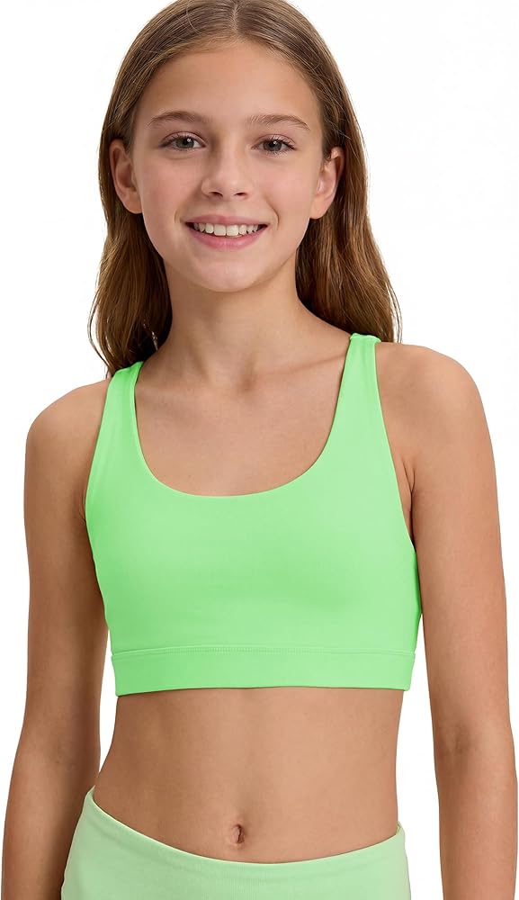 Butter-Soft and Weightless Comfort: Crafted with a premium blend of 80% Nylon and 20% Spandex, this girls sports bra is buttery soft with support that feels like a gentle hug. It fits close to the body for live-in comfort.
