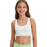 Stylish Strappy Back and Scoop Neck: This girls training bra features a fashionable U-shaped scoop neckline and a unique strappy criss-cross back for a modern athletic look. The ergonomic design prevents straps from slipping and allows for a full range of motion, letting her run, jump, and bend with total freedom.