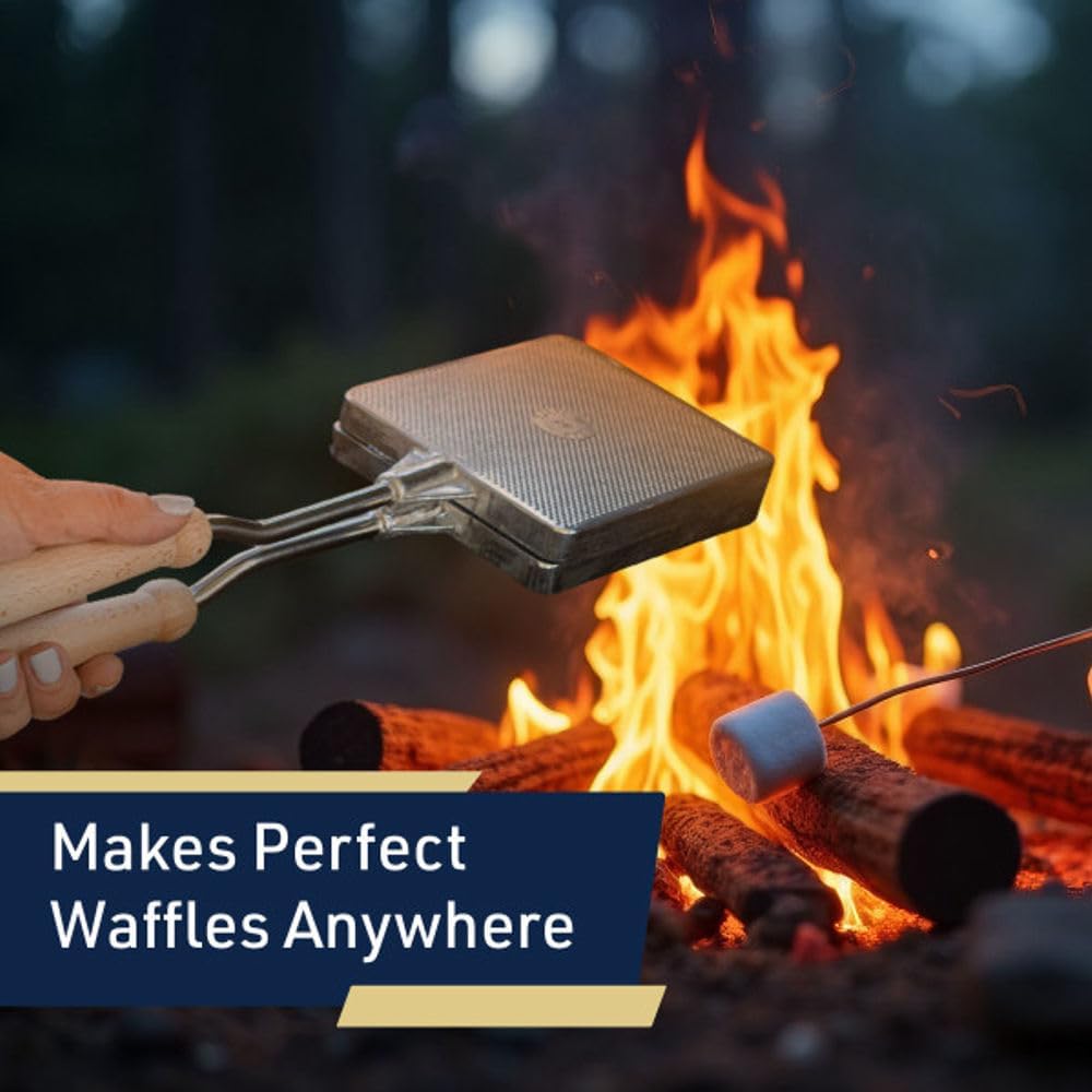 Waffle Maker for Stovetop or Campfire Cooking Equipment - Aluminum Flip Pan Belgian Waffle Iron with Handles - Portable Camping Toaster Great for Kitchen and Camping Cookware by Kings County Tools