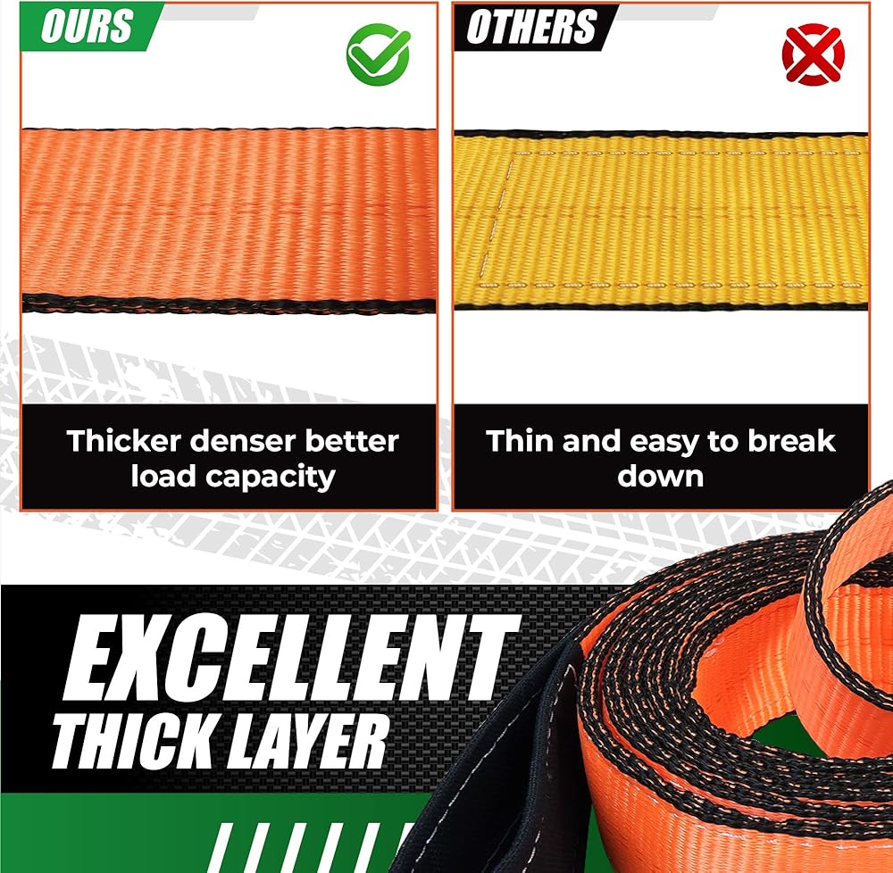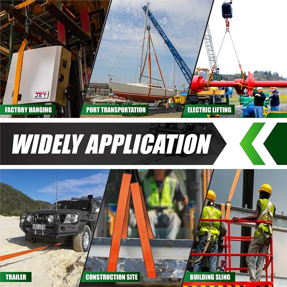 🌟CONVENIENT TO APPLY: Great efficiency in lifting heavy objects. Our sturdy straps are 2-Ply polyester lift straps heavy duty, with only 2% stretch so you get less bounce, more control, and naturally better as a tow strap. Softer and more flexible, perfect for meeting your various needs, lifting heavy weight items like wood, and furniture, securing straps for cargo, or as vehicle trailer traps.