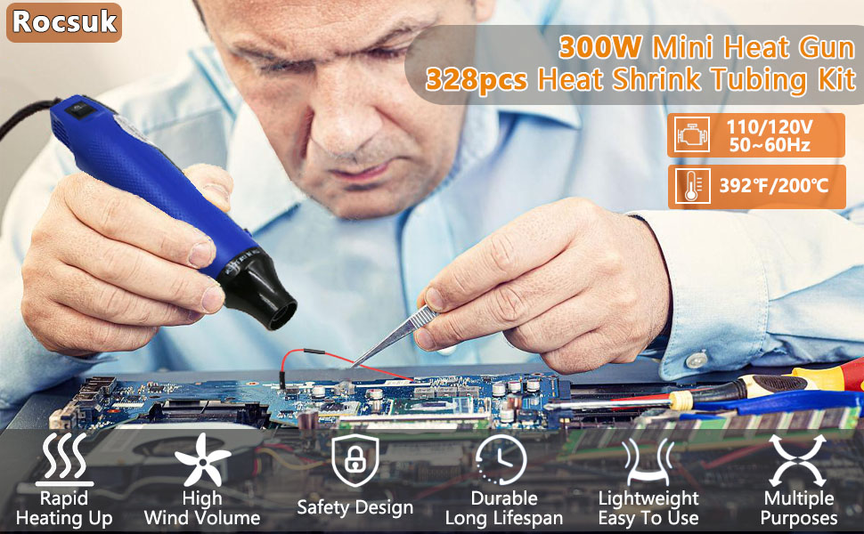 The heat gun has a fast heating speed, the highest temperature can reach 392℉, it is easy to realize the heat shrink tube wrapping. The rear part of the heat gun is designed with a heat dissipation port, which can quickly dissipate heat and effectively extend the service life of the heat gun.