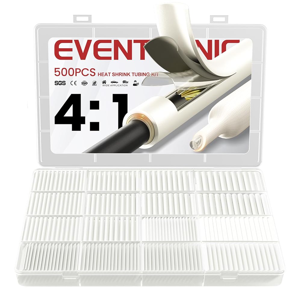 8 Sizes Complete Assortment: This shrink tubing kit includes the eight most commonly used marine-grade sizes worldwide, containing 500 pre-cut segments (1.75" each): 1/15" (122PCS), 3/32" (110PCS), 1/8" (140PCS), 3/16" (40PCS), 1/4" (32PCS), 3/8" (24PCS), 1/2" (20PCS), 3/4" (12PCS). This specification combination efficiently addresses diverse wiring projects, effortlessly meeting insulation and sealing requirements for most wires, cables, and significantly.