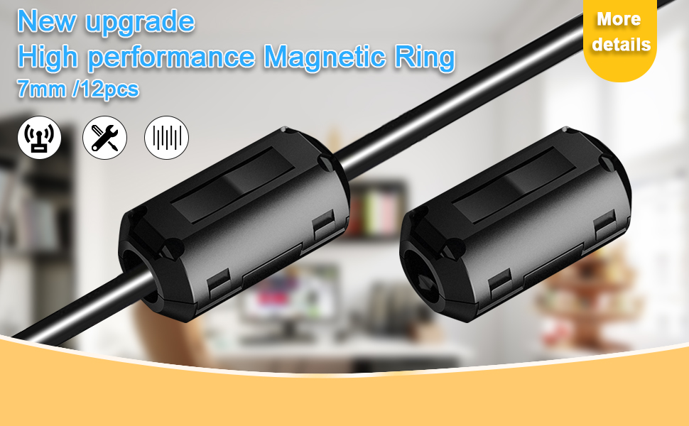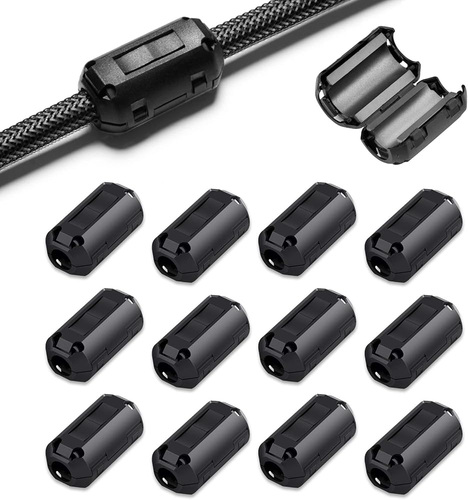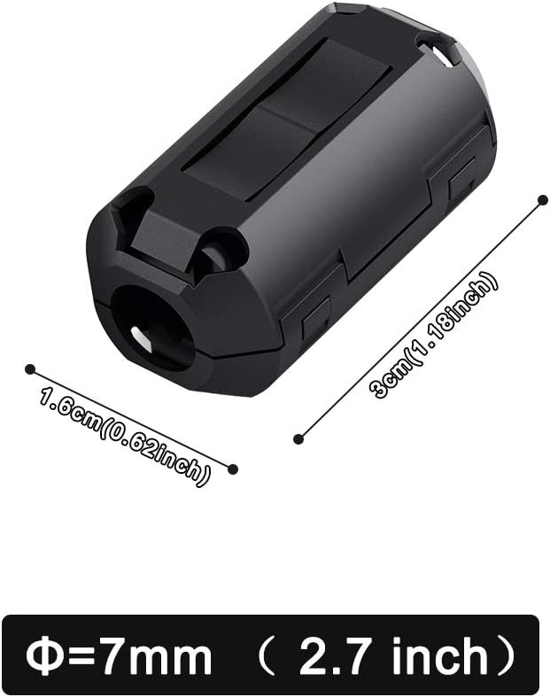 Effective EMI Suppression — The ferrite core fits cables with an inner diameter of 5mm-7mm (0.2 inch-0.27 inch), such as single-core wires and other thin cables. For optimal EMI suppression, install close to the interference source. If protection is needed on both ends, apply one ferrite core at each end of the cable.