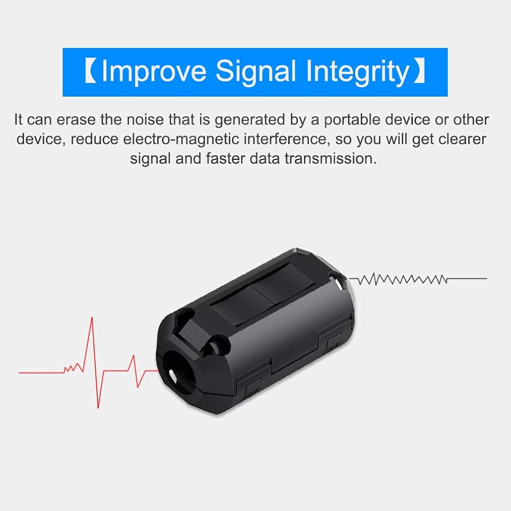 Enhanced Signal Integrity — Constructed with a durable plastic shell and Ni-Zn ferrite core. The self-adjusting inner clips ensure a secure fit, effectively suppressing high-frequency noise generated by household appliances and electronic devices.