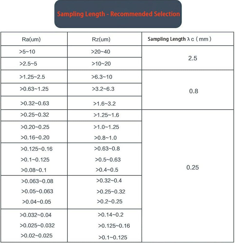 Sampling Length (mm): 0.25, 0.80, 2.50