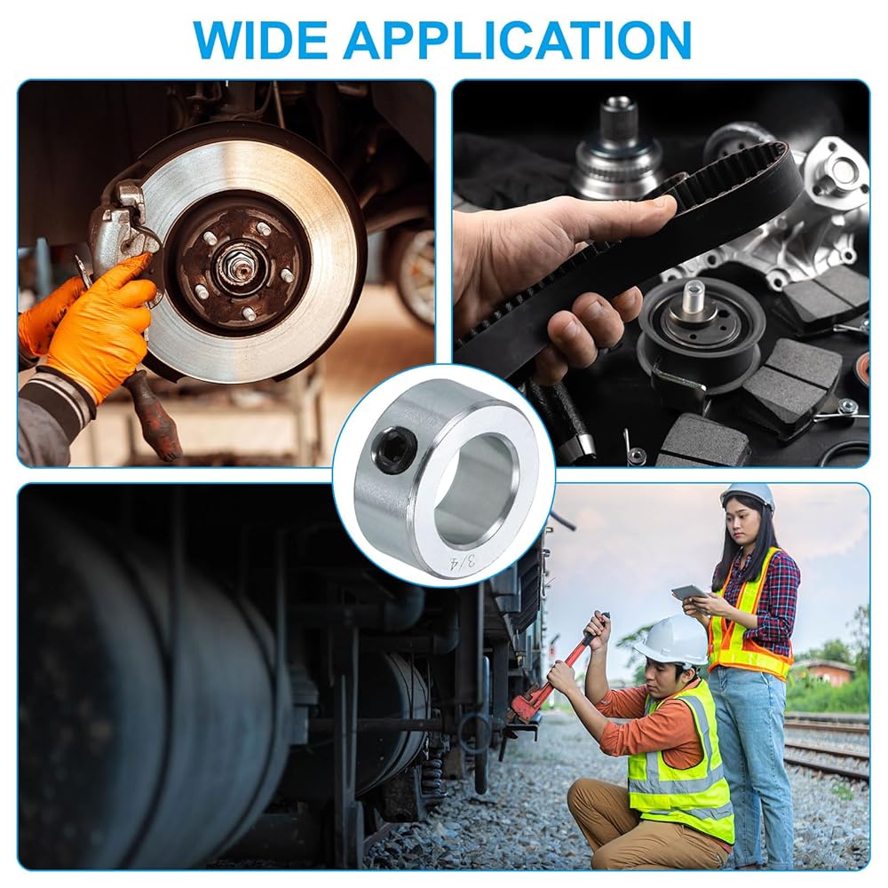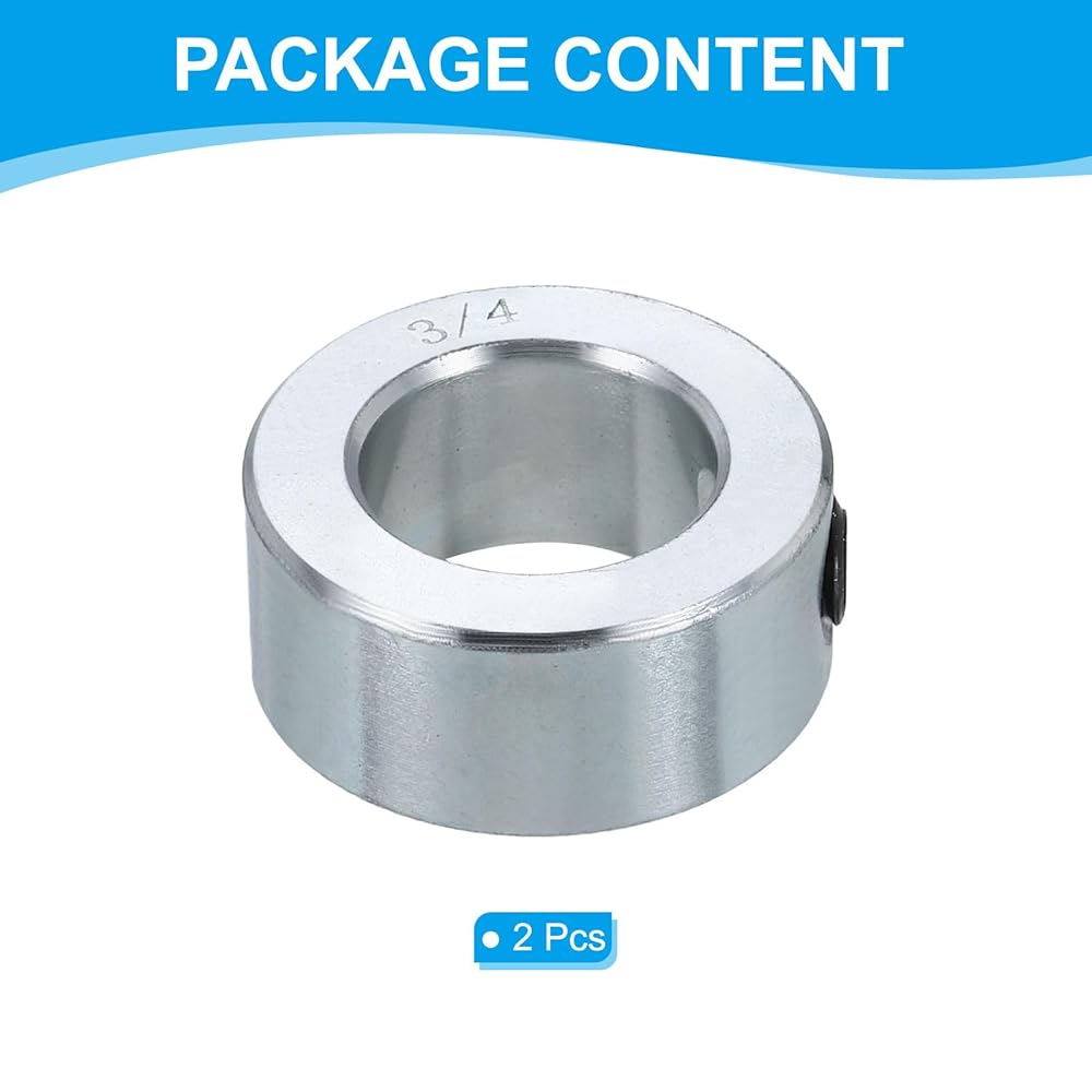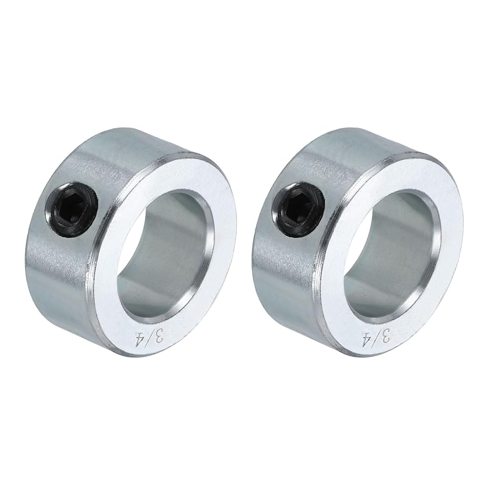 Specification: Color: Silver; Material: Carbon Steel; Thread Size: 4 mm / 3/16 inch; Inner Diameter: 3/4 inch; Outer Diameter: 31.75 mm / 1-1/4 inch; Width: 14.29 mm / 9/16 inch; Package List: 2Pcs Bore Axle Shaft Collars. (Note: Manual measurement may have certain errors.)
