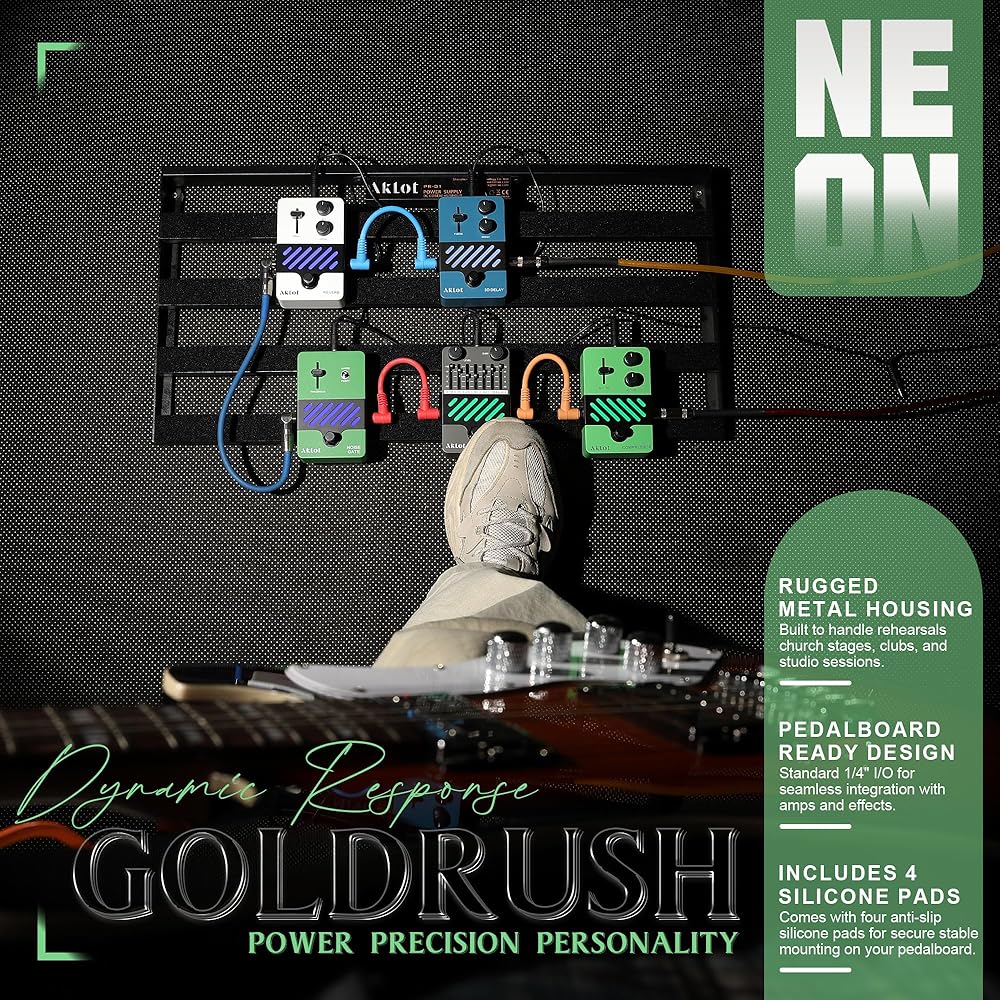 From Subtle Leveling to Singing Sustain: Use the AKLOT NEON Compressor as a transparent dynamic enhancer to smooth out your rhythm playing and tighten clean tones, or increase the sustain for rich, even compression that helps lead lines sing with clarity and control. Perfect for blues, country, funk, worship, and pop guitarists who want consistent tone, added sustain, and polished dynamics without sacrificing natural feel.