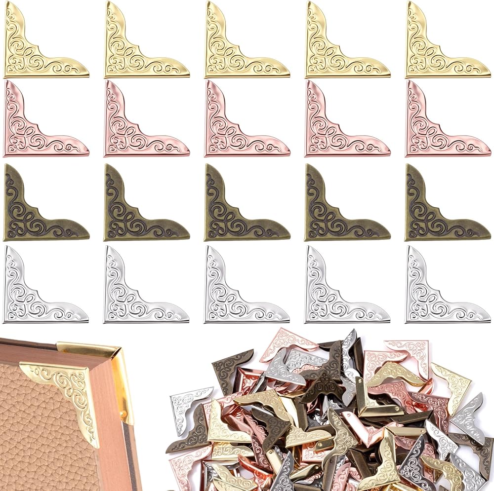 Suitable Size: This vintage corner protector measures 0.9inx0.92in/22.8x23.3mm, fitting most thin to medium book covers.Each package comes in 120pcs set (30pcs of 4 colors) ,including gold, silver, rose gold, bronze, 30pcs per color.