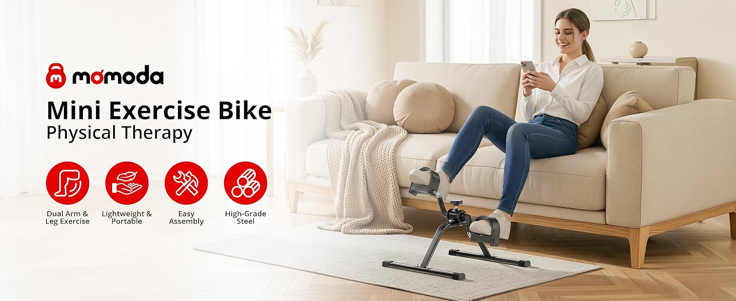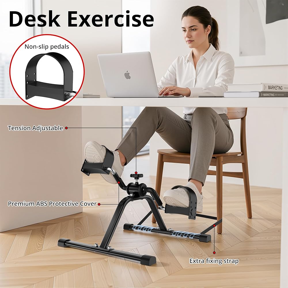 Lightweight & Compact Portable Design:This mini exercise bike is lightweight, space-saving, and easy to carry. With a compact structure, it can be stored under a desk, bed, or in a cabinet when not in use. It is convenient to take anywhere for effective, on-the-go exercise.