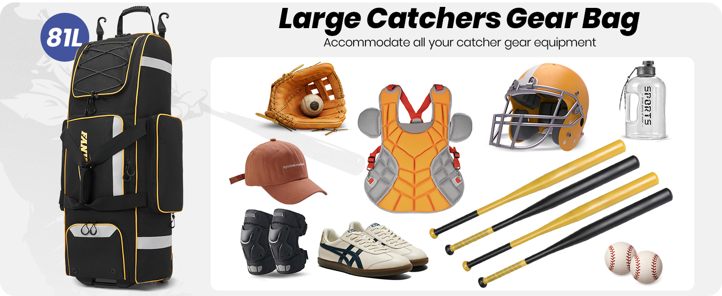 [Massive Catcher-Specific Organization]: 81L can Holds a full catcher's gear set – helmet, chest protector, shin guards, mitt – PLUS 4 baseball bats (Fits Max 34" Bats to Close Zipper) , towels, water bottle & more! Features removable dividers, a dedicated ball compartment, 2 quick-access side pockets, ventilated & odor-resistant cleat compartment, and top sleeve for essentials. End equipment chaos instantly!