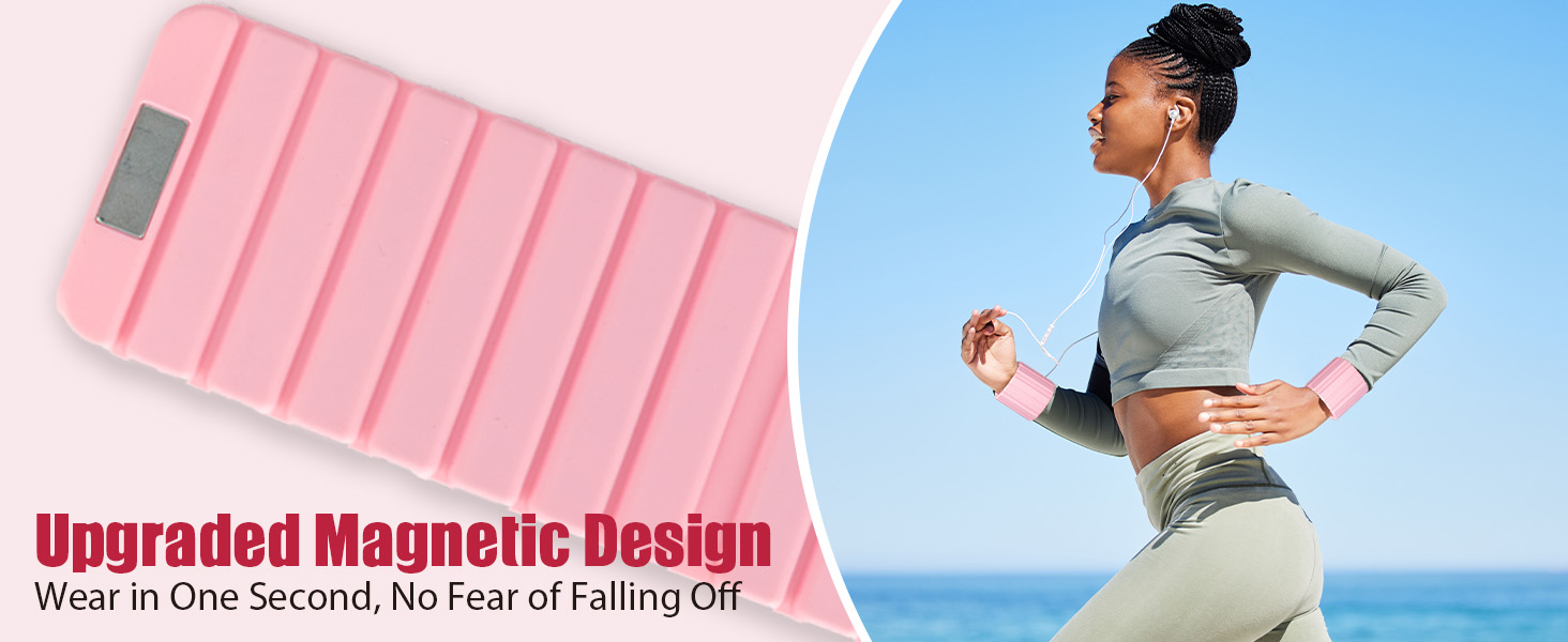 [Magnetic Weighted Bangles] This newly upgraded magnetic wrist weights for women is a better choice than traditional designs. Its strong magnetic clasp attaches in just one second. The 2lb wrist weights stays secure and stable even during high-intensity workouts. You can easily adjust it with one hand for a perfect fit. It feels both comfortable and lightweight. While wearing the weighted wrist weights, you can enhance your strength, endurance, and calorie burn during exercise.