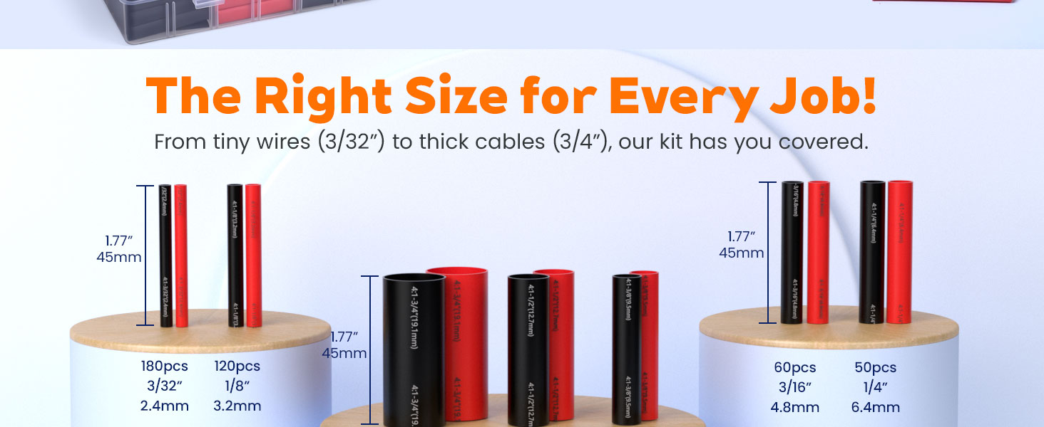 【Easy to Use & Great Value Kit】Simply slide the tube over wires and apply heat for a professional finish in seconds. This kit offers exceptional value for electricians, auto techs, and DIYers.