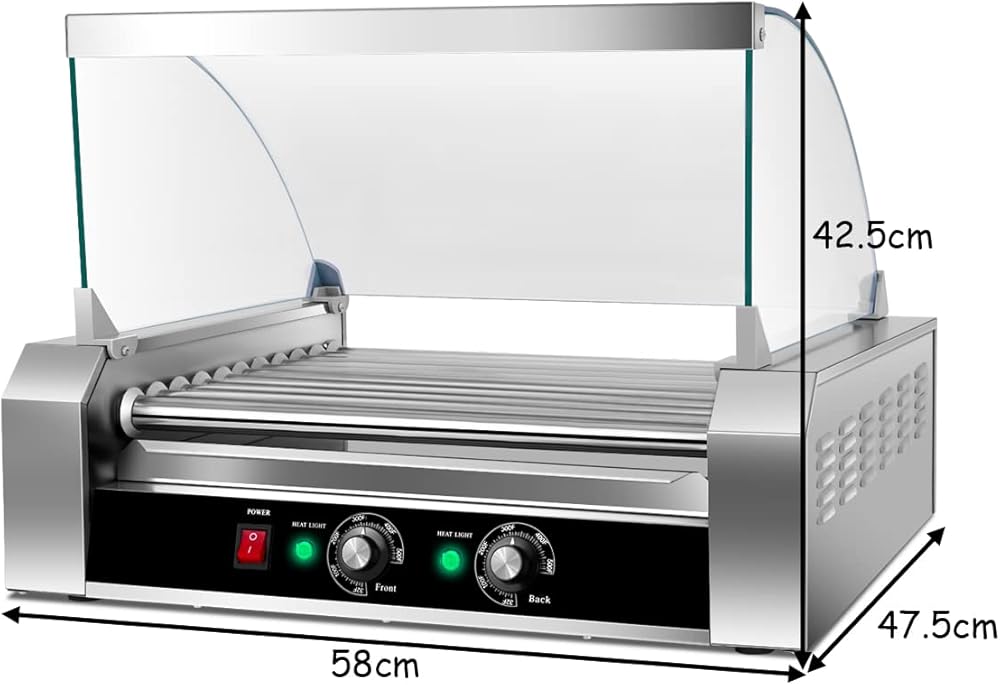 🌭【Detachable Glass Hood】Our hot dog roller machine comes with a curved glass top and side panels with sanitary covers giving the grill a professional look while protecting your food from bugs, dust and debris.