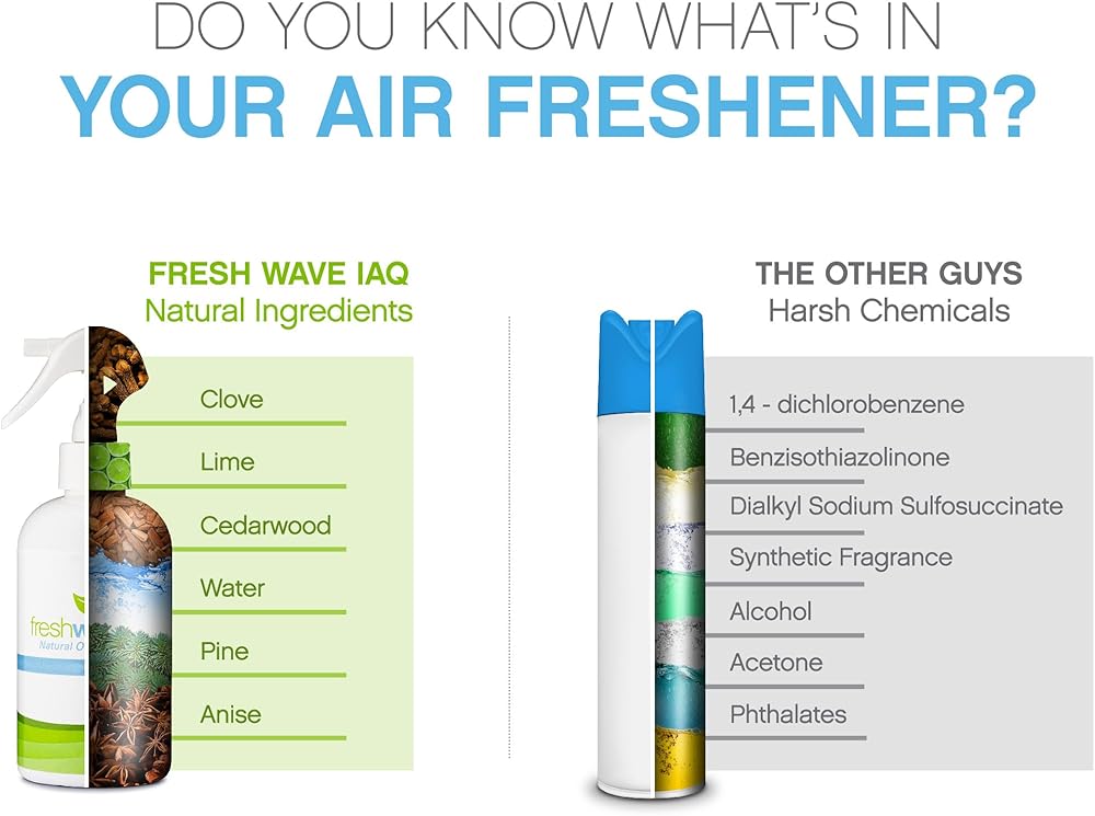• SAFER ODOR RELIEF: Fresh Wave Liquid has earned a Safer Choice label from the EPA. They're non-toxic, non-GMO, and non-hazardous, and safer for people, pets, and the planet. No harsh chemicals, synthetic perfumes, alcohol, or phthalates.