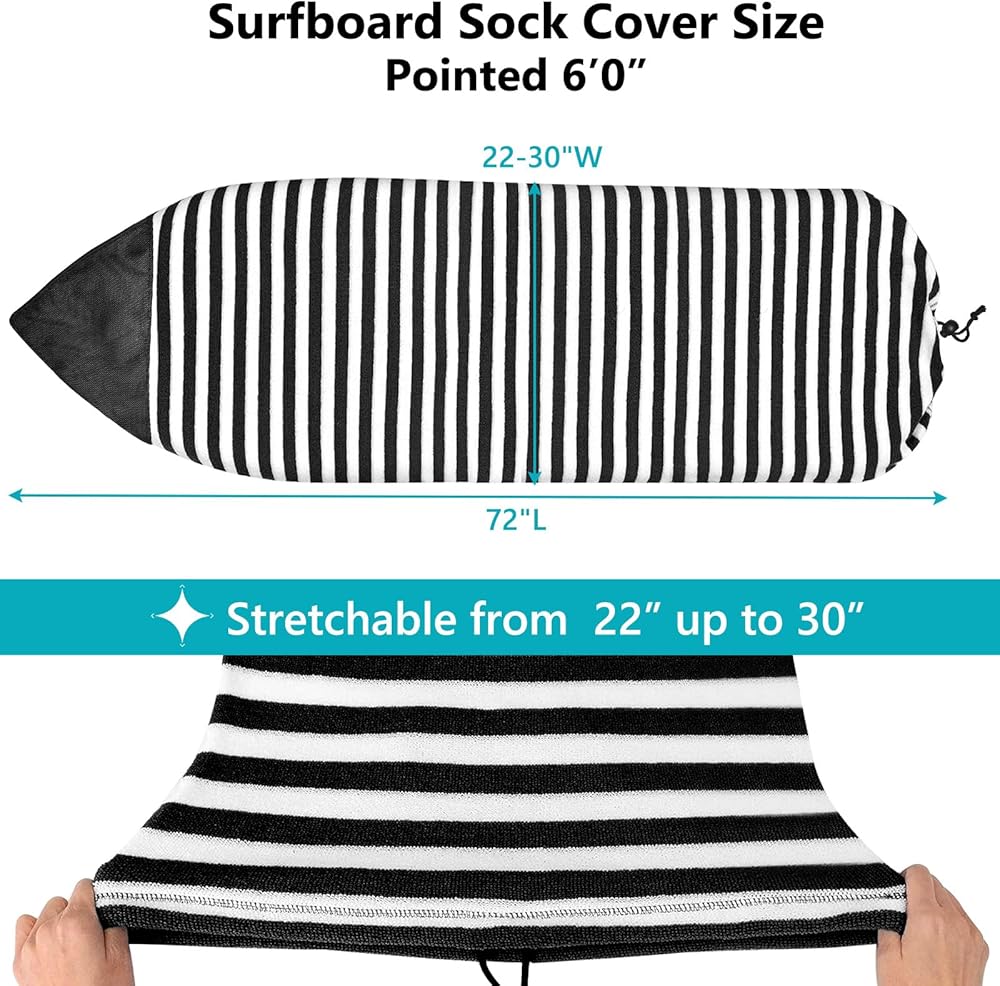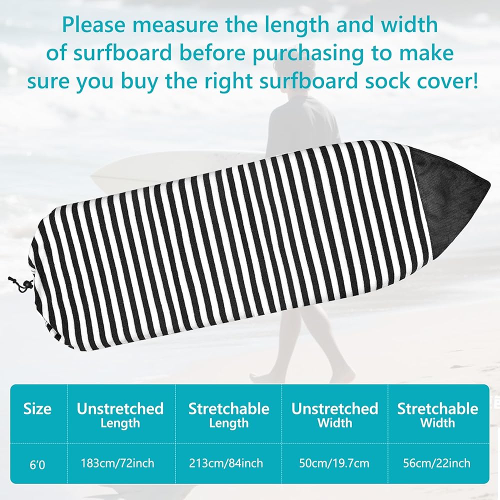 【Applicable Size】This surfboard sock cover measures 72"L x 22-30"W, it is a common size on the market and fits most surfboards. WARM NOTE: Please measure your surfboard carefully before purchasing, we recommend choosing a size at least a few inches longer than your surfboard.