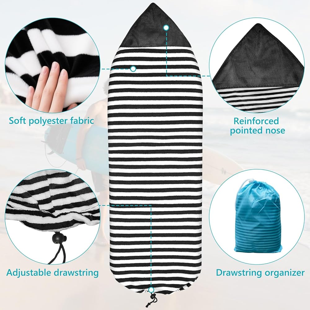 【Stretch Fabric】Our Surfboard cover is made of soft knit polyester fabric, it is light weight,stretchable and comfortable. These features make the surfboard sock cover portable and easy to put on and take off.
