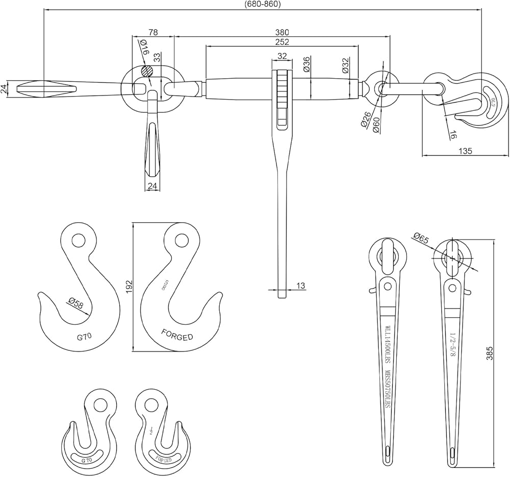EASY TO INSTALL : Forged handles easily hold the binder in place. This item applies to 3/8" grade 70 or 1/2" grade 70 chains.