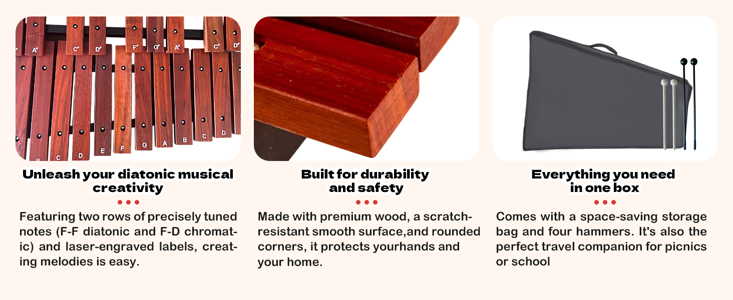 Inspire Creativity & a Love for Music: Designed to foster creative expression and cognitive development. This glockenspiel provides a hands-on foundation in music theory, encourages improvisation, and supports the development of rhythm skills in an engaging and rewarding way.