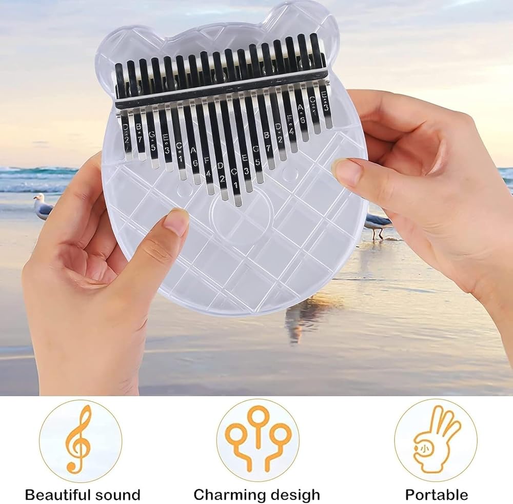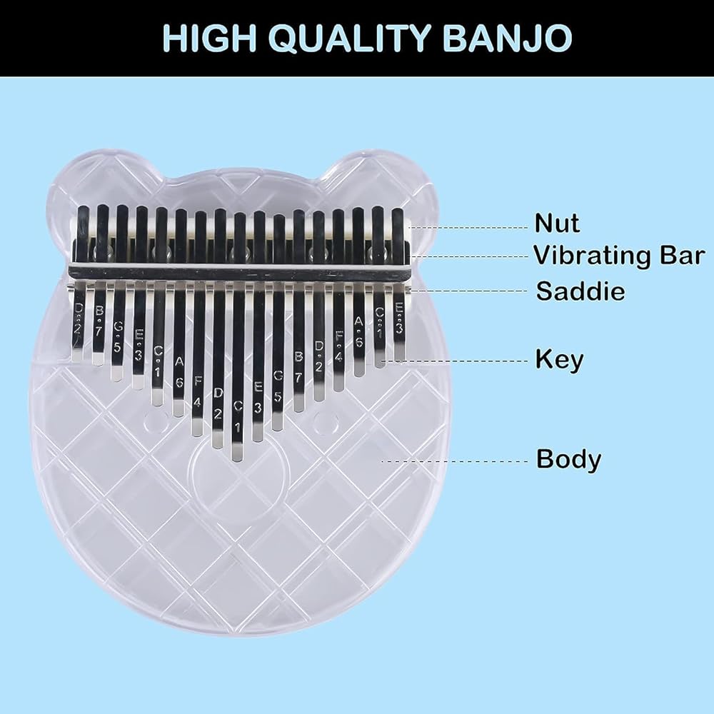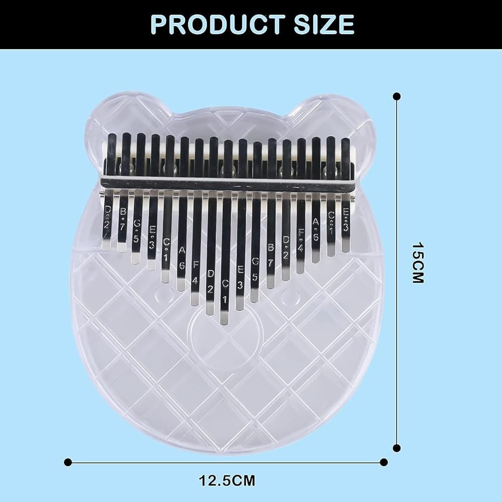 1. This mini thumb piano is made of clear acrylic material. Smooth surface, strong and durable, preventing moisture,oxidation, scratches, falling, and very easy to carry.