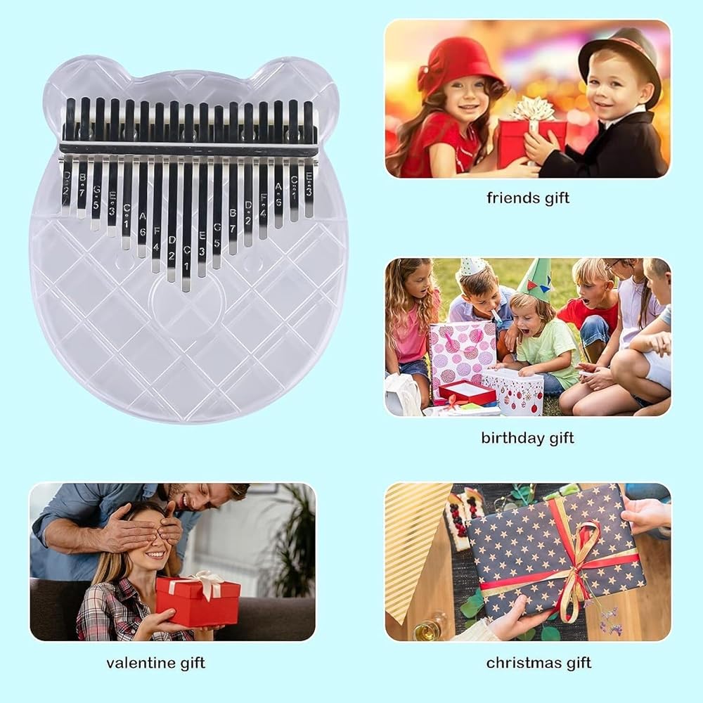 Mini Thumb Piano - Mini Portable Crystal Clear Acrylic Thumb Piano for Kalimba with Tune Hammer, Professional Finger Piano Musical Instrument Performance, Finger Piano Gift for Kids Adults Beginner