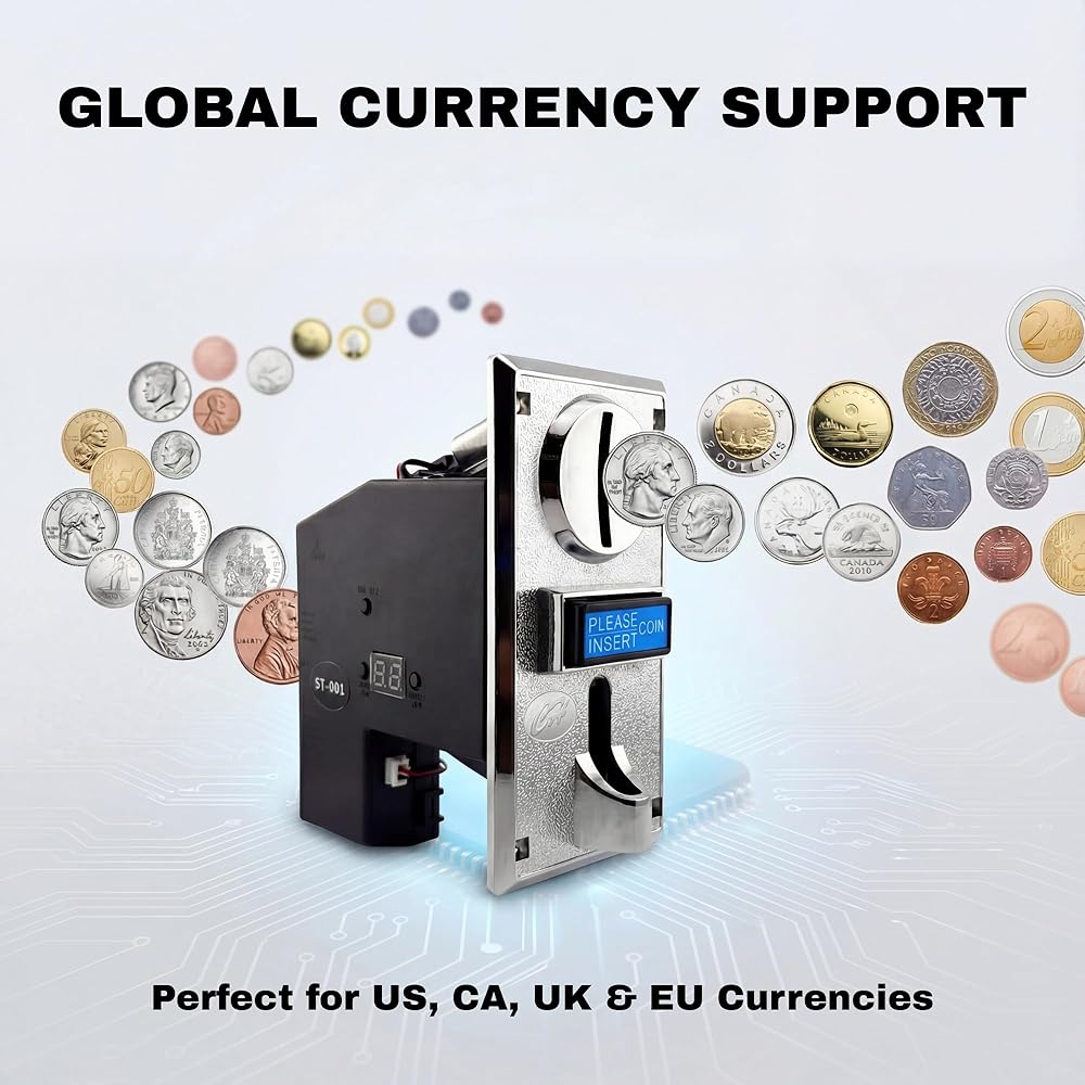 ✅【REVOLUTIONARY 8-CHANNEL RECOGNITION】Unlike standard 6-channel models, the Sintron ST-001 learns up to 8 different coin denominations simultaneously. This expanded capacity perfectly covers all circulating coins in the UK and Europe, while offering maximum flexibility for US and Canadian setups (Pennies to Toonies), ensuring no potential revenue is rejected.