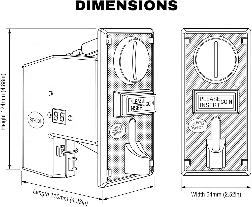 ✅【ADVANCED ANTI-CHEAT SECURITY】Stop revenue loss from slugs and fake tokens. Engineered with a high-precision CPU system, the ST-001 identifies coins based on material, diameter, and thickness with extreme accuracy. Features built-in anti-phishing, anti-shock, and anti-high frequency interference alarms to protect your vending business from sophisticated cheating methods.