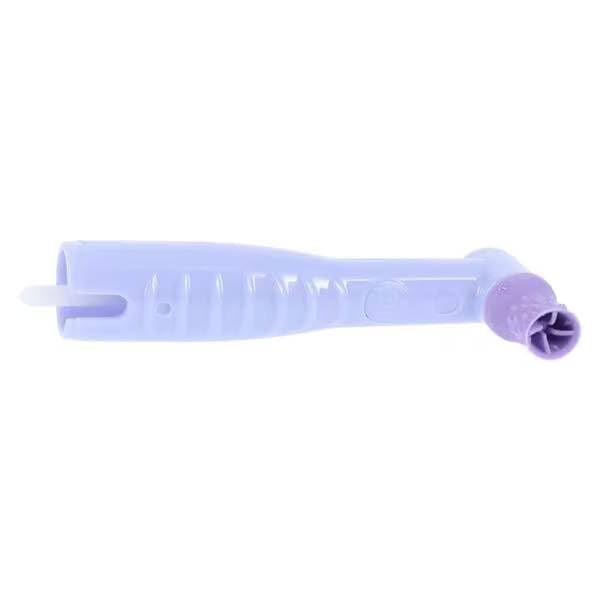 Contra-Angle Disposable Ergo Prophy Angles with Torque Lavender Cups, Package of 144. Torque Cups effectively reduce splattering with its turbine-like internal blade geometry, and features outer cross-spiral ridges for improved interproximal cleaning.