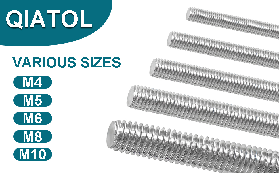 Premium Material: Threaded Rods are mainly made of high-quality 304 stainless steel, which is rust-proof, corrosion-resistant and waterproof.