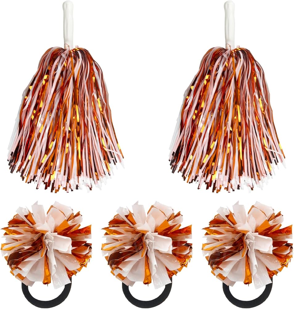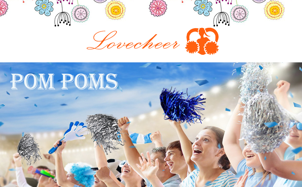 Cheerleading Set: 2pcs 13inch cheerleading pom poms, lightweight and easy to carry for everyone; 3pcs mini pom pom elastic bands, great for matching any cheerleading squad; Simple handle is comfortable to hold,don't hurt finger