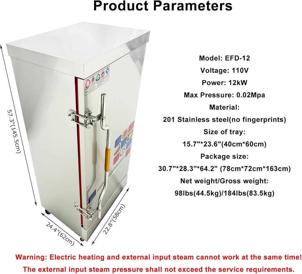 Wide Application: The steamer has two functions of electric heating and steam, which is suitable for catering factory, school, hotel, restaurant, buffet and other places