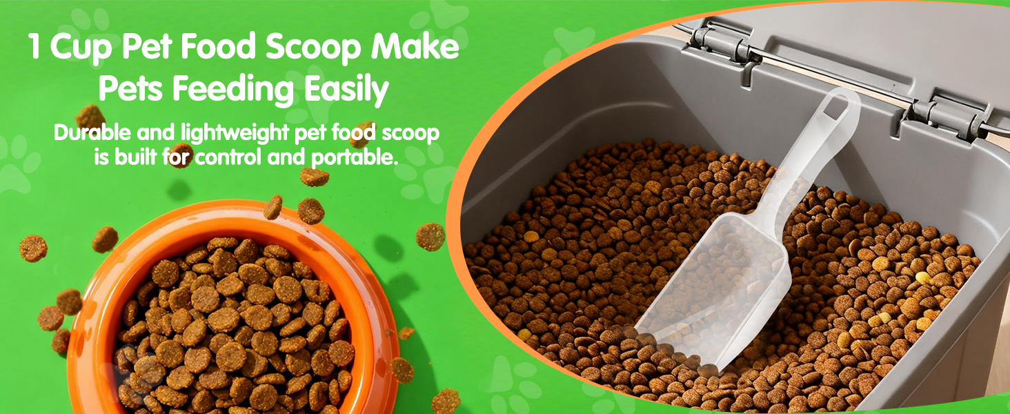 2-Pack Value Set – Includes two durable plastic transparent scoops, perfect for keeping one in the pet food bin and another for travel or backup.