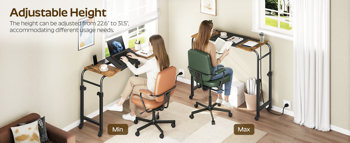 Retro Industrial Style: Blending a wood-grain tabletop with a black metal frame, this modern laptop desk creates a classic industrial aesthetic. It integrates seamlessly into loft, rustic, and contemporary decor, serving as both a functional piece and a stylish accent