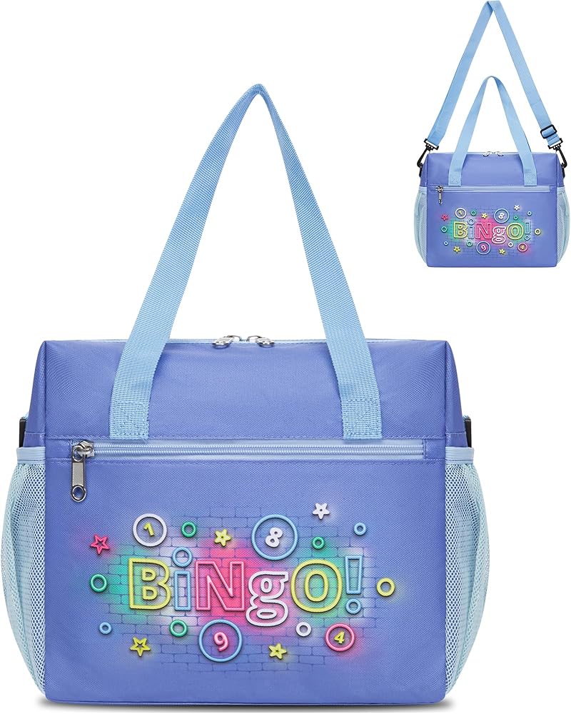 READY FOR BINGO: This bingo bag is 10.63"(L) x 5.12"(W) x 9.05"(H), spacious enough for daubers, cards, and other bingo game necessities, snacks, drinks, and other personal items