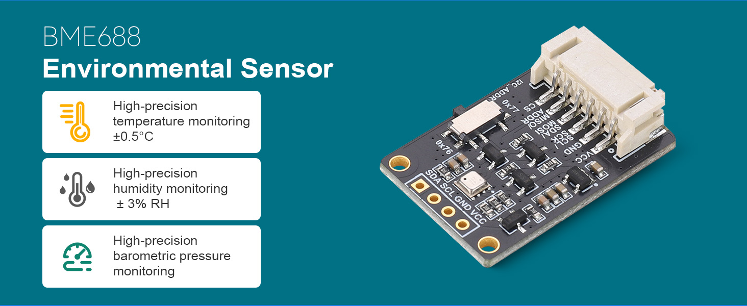 BME688 Environmental Sensor, AI-Enhanced, Monitors Temperature, Humidity, Pressure & Gas, I2C/SPI, 3.3V/5V Compatible for Raspberry Pi, Arduino, ESP32 with AI Function