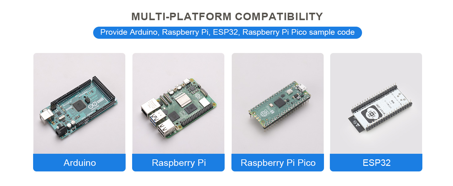 - Multi-Platform Support: Demo codes for Arduino/RPi/ESP32/Pico