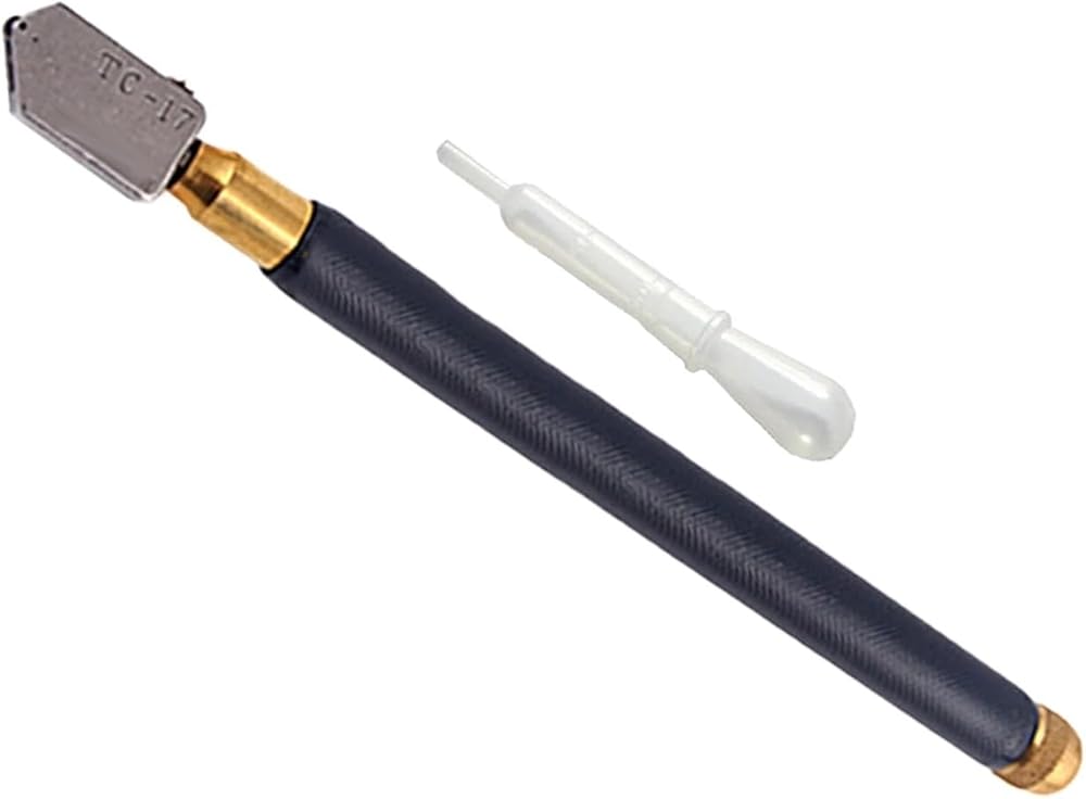 MIUYTRN TC-17 Oil Glass Cutter Metal Handle Diamond Straight Head Cutting Tool Black 17.5cm cuicui