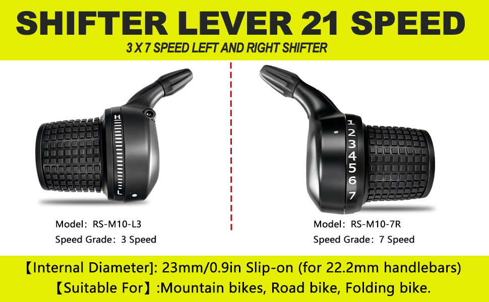 Smooth & Reliable Shifting: This 3x7 shifter set features indexed shifting for fast and precise gear changes. Clear numbers on the dial help riders easily locate gears, improving control and riding experience