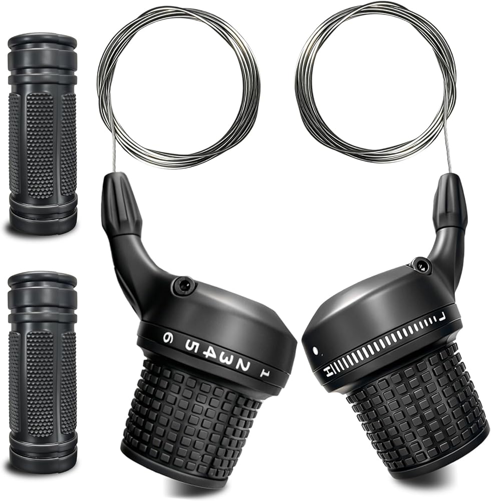 Compatible with 21-Speed Bikes: Includes a left 3-speed and right 7-speed twist shifter set with gear cables and textured grips