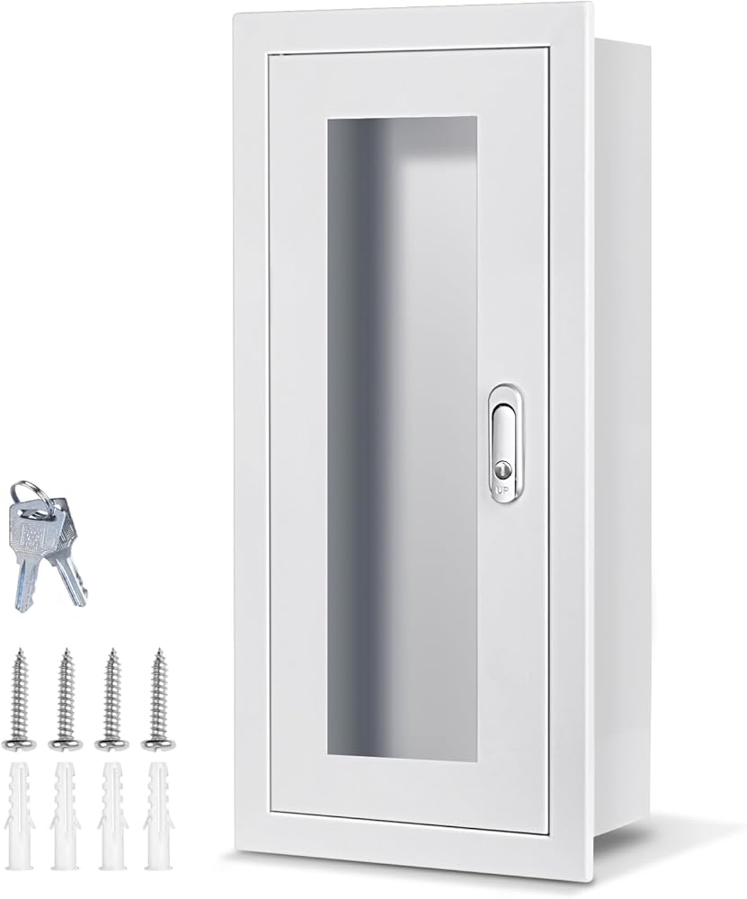 Easy Installation:Make a hole of 24 "H x 10.6" W x 6.7 "D on the wall according to the size diagram, and you can easily install the fire extinguisher box on the wall. (Fire extinguisher not included)