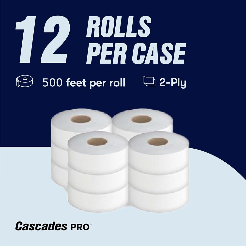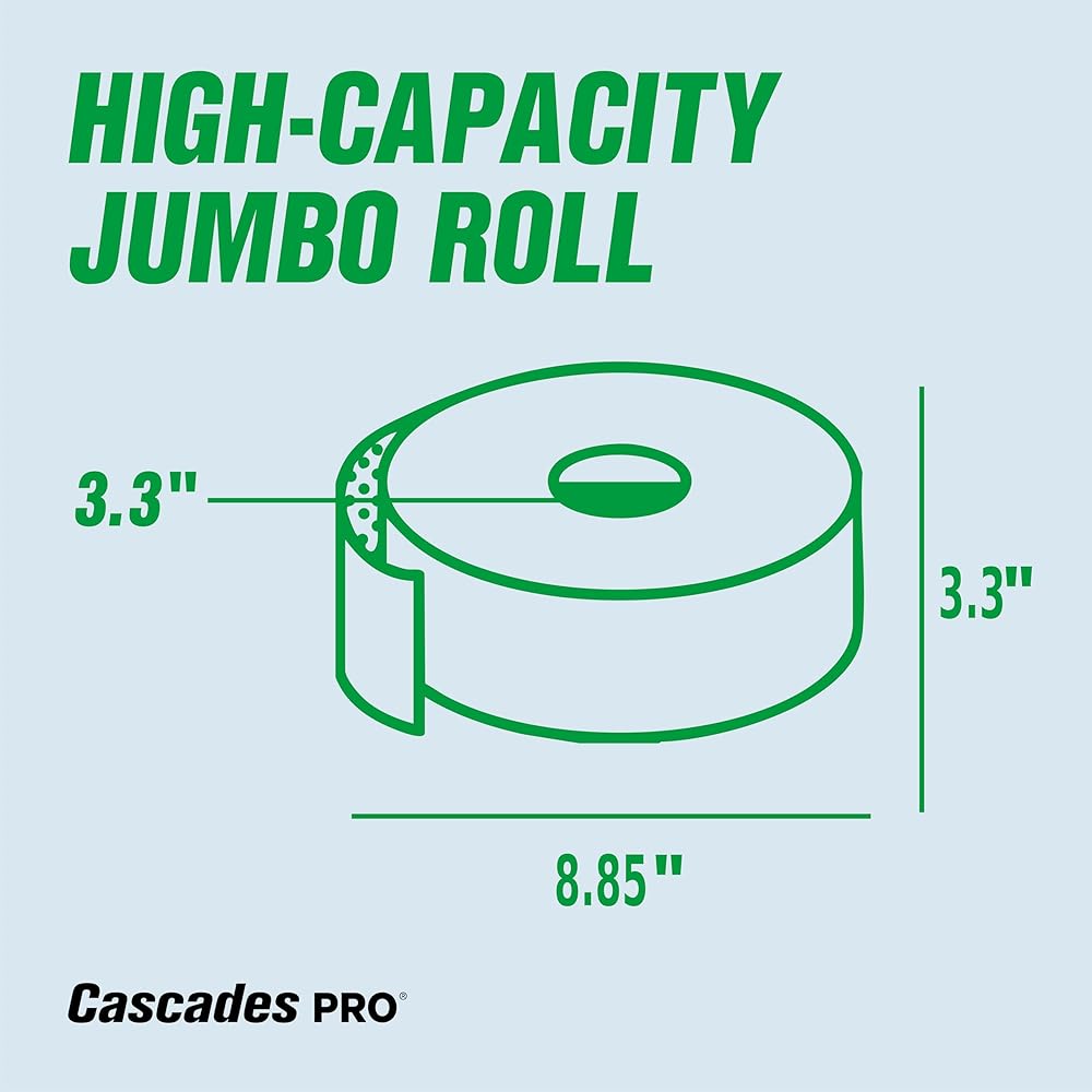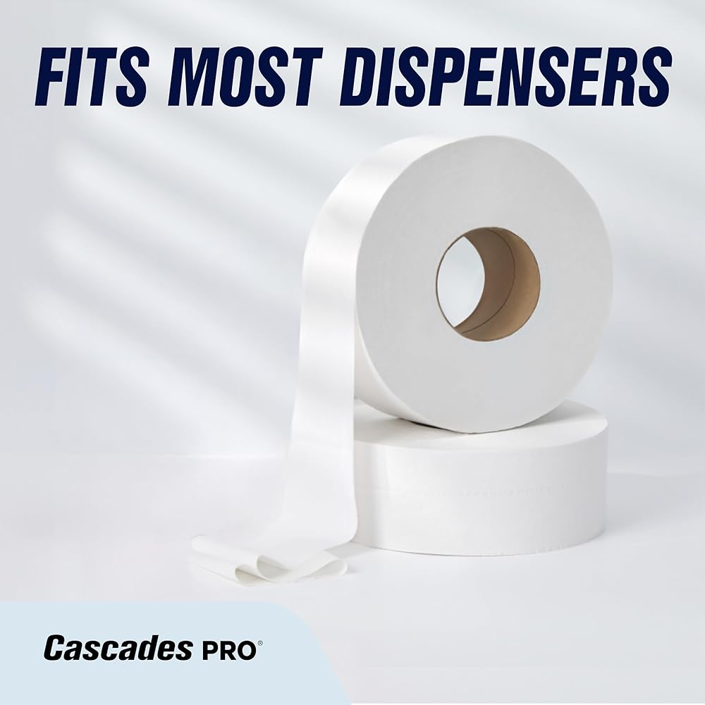 Strong, soft and durable, PRO Select Jumbo Toilet Paper is ideal for use in high-traffic public or commercial restrooms, reducing maintenance with its long-lasting rolls. Made from a high percentage of recycled fibers, this two-ply toilet paper is environmentally friendly. The jumbo roll helps cut down on runouts and reduces maintenance time, ensuring customer satisfaction time and time again. It fits in Cascades Jumbo Toilet Paper Double-Roll Dispenser and Universal Jumbo Toilet Paper Single-Roll Dispenser. Bathroom tissue is an optimal choice for use in restrooms in schools, classrooms, breakrooms and more. It safe for sewer and septic systems.