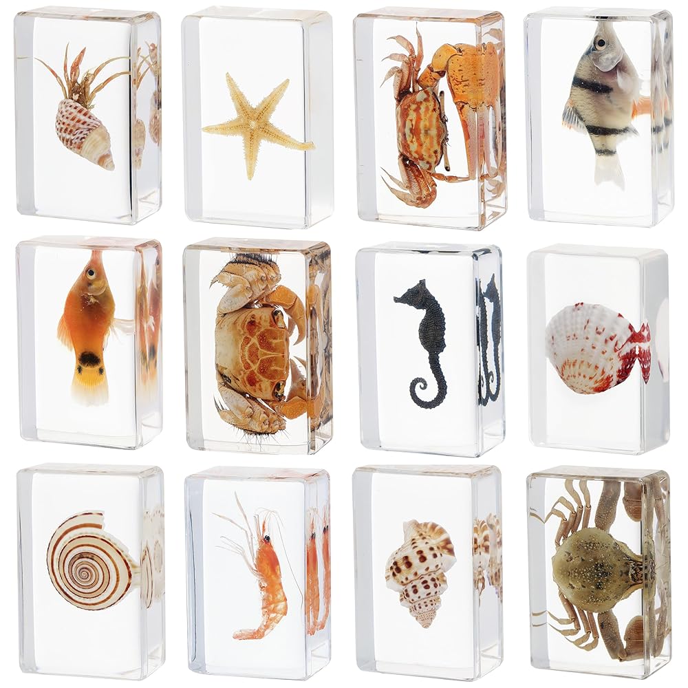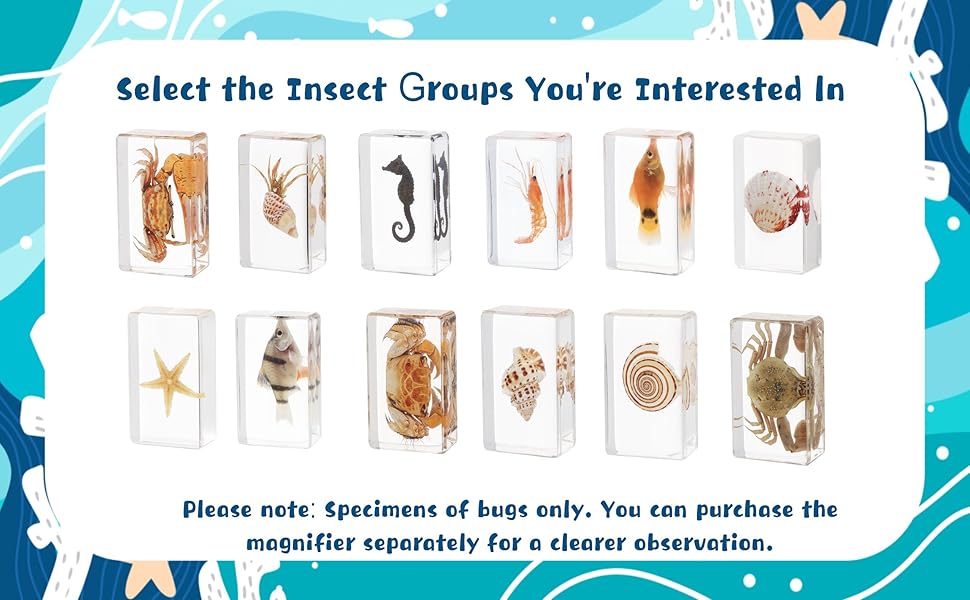 Diverse Insect Specimens: You'll receive a set of 12 captivating ocean insect specimens encased in resin, showcasing 12 distinct styles including various bugs. This assortment caters to bug enthusiasts of all kinds and provides an intriguing glimpse into the insect world.