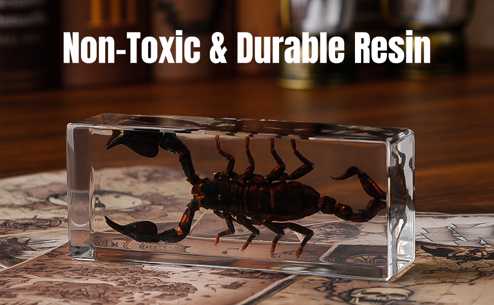 Real Preserved Scorpion Specimen in Resin – Encased in durable resin to highlight body structure and natural details, this genuine scorpion specimen is preserved for long-lasting clarity.