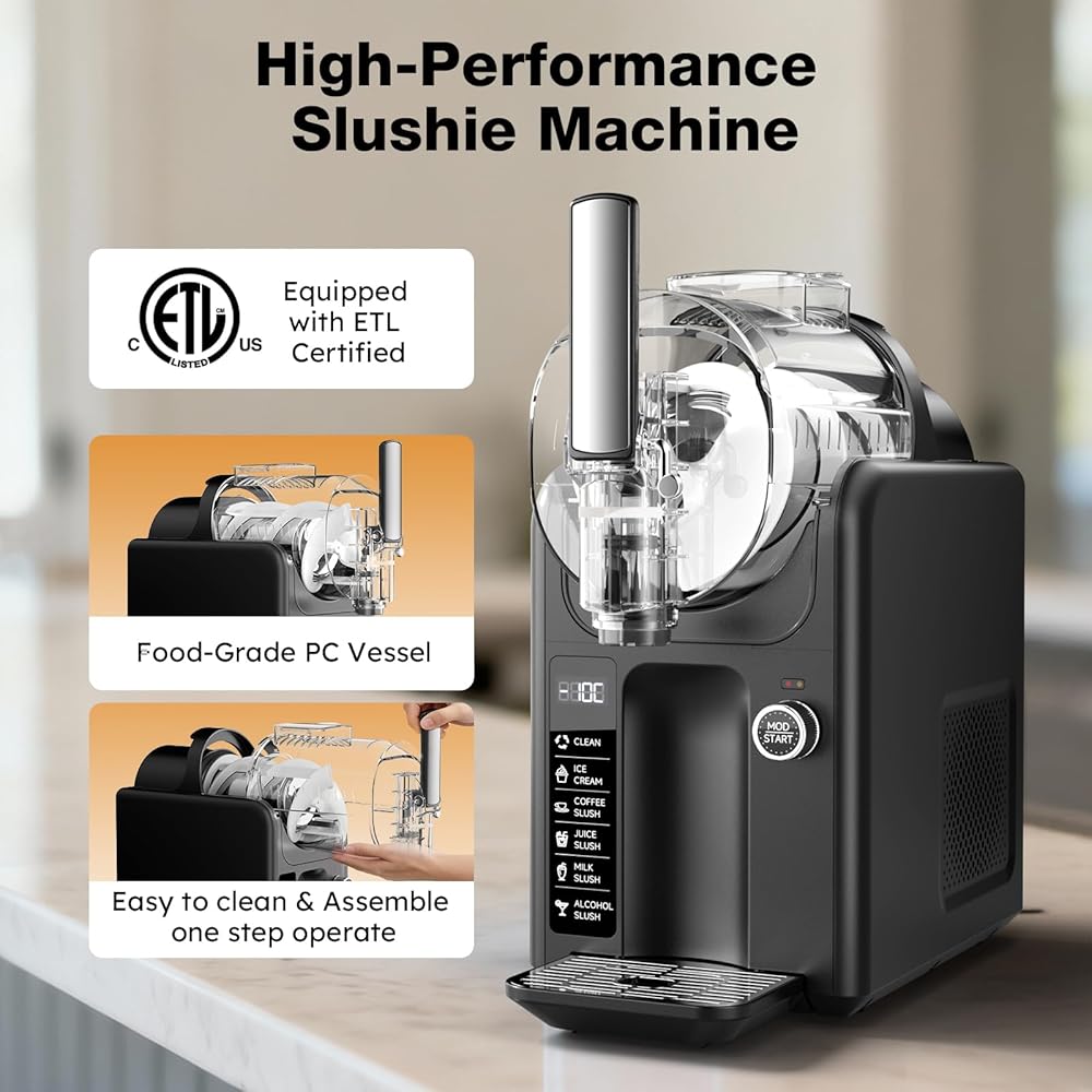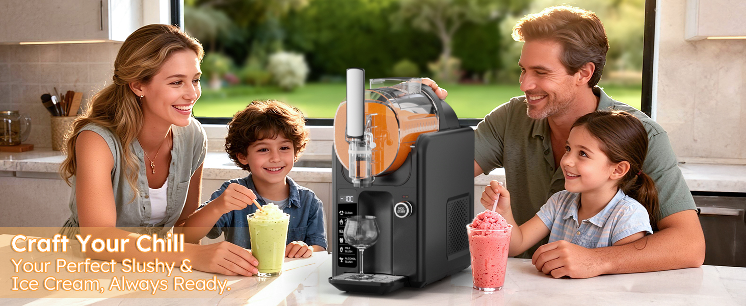 🎛️ Customizable Texture & Easy Operation: One machine, two treats—effortlessly switch between refreshing slushies and rich ice cream. The intuitive rotary knob gives you creative control, allowing you to fine-tune the texture from soft-serve smooth to firmly set.