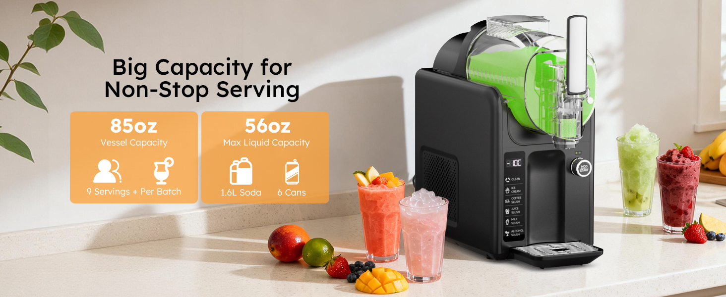 🍹 Large 85 oz Capacity for Gatherings: Designed for entertaining, the generous 85 oz tank (max liquid fill: 61.5 oz) makes it easy to serve bar-quality frozen treats to a crowd. Perfect for parties, BBQs, or cozy family nights in.