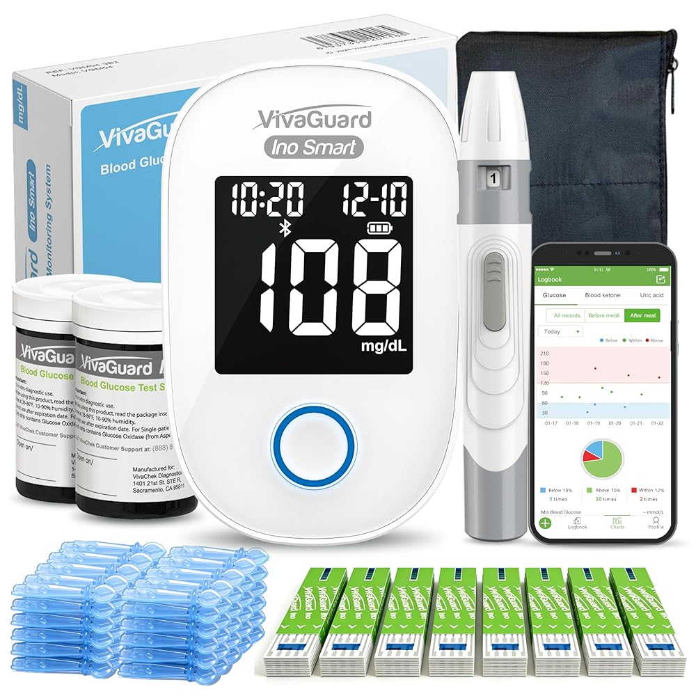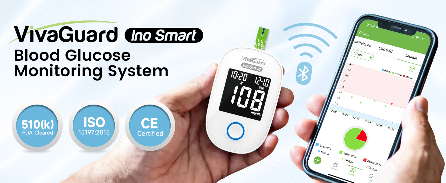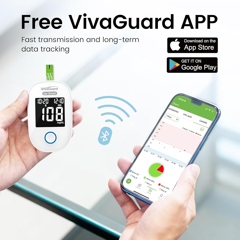 【Bluetooth-Enabled with Free App Sync】: Download the "VivaGuard" App from the App Store or Google, Automatically sync every result to our free mobile app via Bluetooth, eliminating manual tracking. The app stores your readings securely, analyzes trends, and helps you share data easily with your healthcare provider for smarter, data-driven decisions.